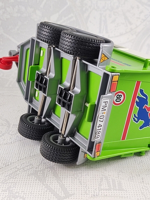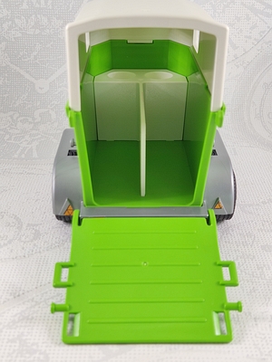 Korpus grün: 30635462, Dach weiß: 30635482, Chassis / Rahmen grau: 30275990, Innenausstattung weiß: 30234030, Rampe grün: 30635472, Achse grau/schwarz: 30825230, Achs-Klammer schwarz: 30275950, Anhängerstütze und 2 Bremsklötze rot: 30611490, Stützrad rot: 30085950