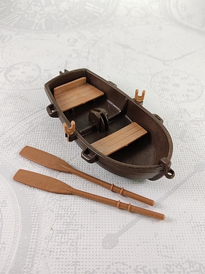 komplettes Ruderboot mit zwei Sitzbänken, zwei Paddeln und zwei Paddelhalter