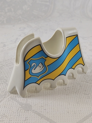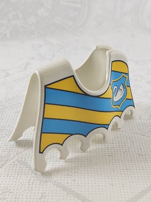 Schwanenritter Pferdeumhang, Schabracke, weiß/blau/gelb mit Wappen "Schwan"