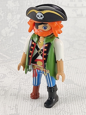 Pirat aus dem Playmobilheft "Super 4" Nr. 3 / 2016 - orange Haare und Bart, Holzbein, Augenklappe, mit Piratenhut