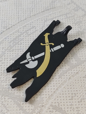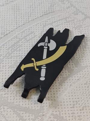 Flagge gewellt, zerrissen mit Säbel gold und Axt silber auf beiden Seiten