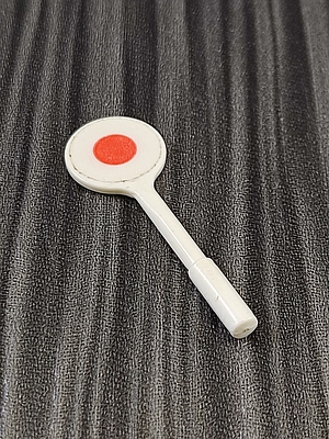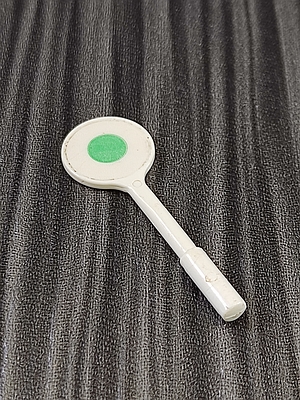 Polizeikelle, mit Aufkleber: auf der einen Seite ein roter Kreis und auf der anderen ein grüner Kreis