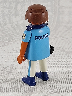 Polizist, kurzärmliges Hemd, Aufdruck "Police" auf dem Rücken, dunkle Haut, Pistolenhalfter 30030780