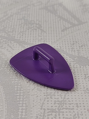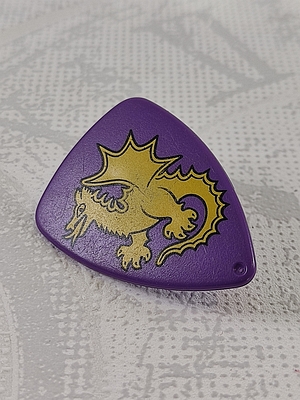 dreieckiges Schutzschild, abgerundete Ecken, gelber Drachen auf lila Hintergrund
