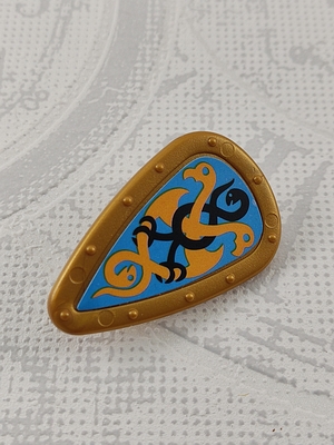 dreieckiges Schutzschild, gold, abgerundete Ecken, gelbe Schlangen auf blauem Hintergrund