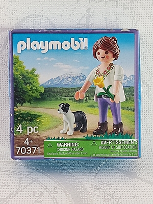 Milka-Frau: 500070371_frau, Hund, Border Collie schwarz/weiß: 500070371_hund, Glockenblume gelb mit Stiel: 500070371_blume