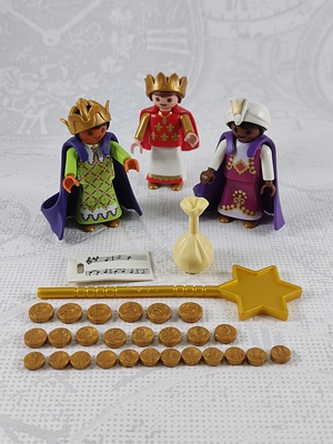 kleiner König rot/weiß: 50004075_koenig_rot, kleiner König grün: 50004075_koenig_gruen, kleiner König pink/weiß: 50004075_koenig_pink, Umhang Kind rot: 30080300, Umhang Kind mit Tasche lila: 50004075_umhang_lila, Umhang Kind mit Tasche d.lila: 50004075_umhang_dlila, Krone Kind 6-Zacken gold: 30208250, Krone Kind gold: 30222250, Turban Kind weiß: 30631052, Sternen-Stab gold: 50004075_stab, Notenblazz weiß/schwarz: 30631022, Geldsack, Beutel h.gelb: 50004075_beutel, 26 Münzen (6 x 5cent, 8 x 2cent, 12 x 1cent) gold: 30610570
