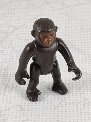 dunkelbrauner, kleiner Gorilla mit etwas hellerem, braunen Gesicht, Arme und Beine beweglich, 4 cm hoch