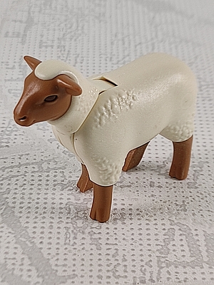 weißes Schaf mit h.braunen Beinen und h.braunem Gesicht