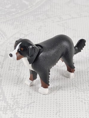 stehender Hund, schwarz, weiß braun, Kopf beweglich