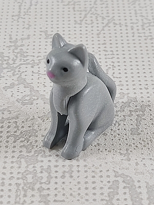 hellgraue Katze, sitzend mit schwarzen Augen und rosa Nase