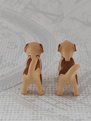 Es gibt zwei Versionen dieses Welpen, die unter der selben Artikelnummer geführt werden. Bei V1 ist der Schwanz gerade, bei V2 nach rechts gebogen (siehe Foto 2).