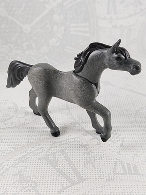 d.graues Pferd mit schwarzer Mähne, Schweif und Augen