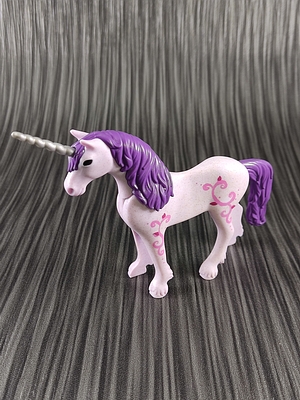 helllila Pferd mit dunkellila Mähne, pinker Verzierung, silbernes Horn