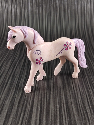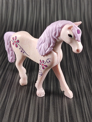 rosa-meliertes Pferd mit lila Mähne, am Kopf Öffnung für silbernes Horn (30257872)