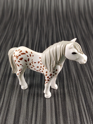 weißes Pony mit d.braunen Flecken und grauer Mähne rechts