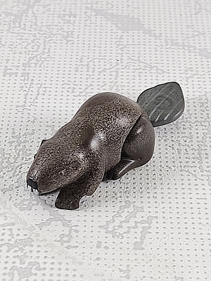 dunkelbrauner Biber mit dunkelgrauem Schwanz, Hinterbeine und Schwanz beweglich