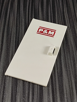 Tür für Bürocontainer, Baucontainer, Baustelle - mit rotem Aufdruck "P & M"