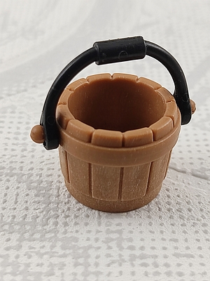 brauner Holzeimer mit schwarzem Henkel