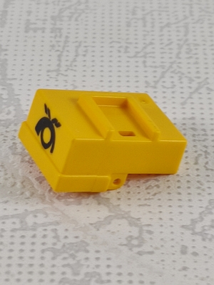 kleine, gelbe Postkiste mit schwarzem Posthorn für Fahrradgepäckträger