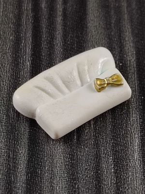 kleine, weiße Geldbörse, Tasche mit kleiner goldener Schleife