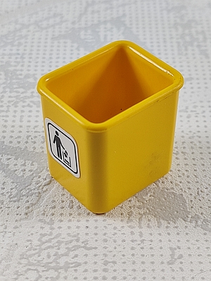 Abfalleimer mit Clip auf der Rückseite und Aufklebern auf beiden Seiten