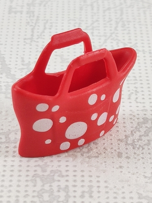 rote, ovale Tasche mit weißen Punkten, zwei Handgriffe