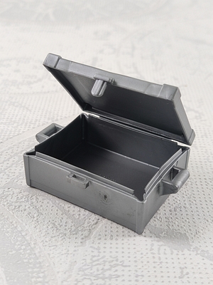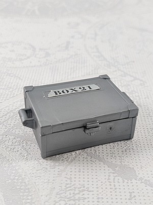 Kiste mit zwei Griffen und Aufkleber "BOX 21"