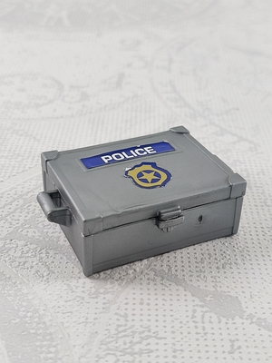 Kiste mit zwei Griffen und Aufkleber "Police"
