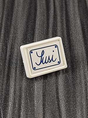 rechteckiges Schild, Tafel 1,4 cm x 1,8 cm mit Aufkleber "Susi" aus dem Playmobil-Set 3979