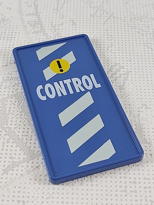 rechteckiges Schild ca. 7,3 cm x 3,7 cm, Aufdruck: "Control", schwarzes Ausrufezeichen in einem gelben Kreis, weiße Streifen
