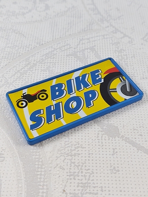 Schild 7,4 cm x 3,8 cm mit Aufkleber "BIKE SHOP" auf beiden Seiten