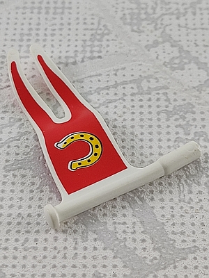 Wimpel mit gelben Hufeisen auf rotem Hintergrund