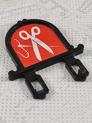 Hausschild mit Aufkleber auf beiden Seiten: Schere, Nadel und Faden