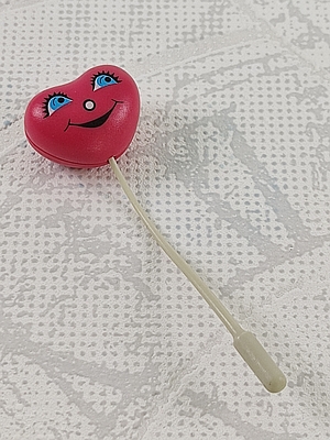 zwei pinke Ballonhälften mit Gesicht und graue Schnur, komplett