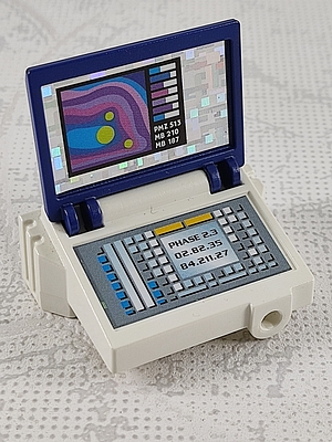 zweiteiliger Laptop, weiße Basis mit dunkelblauem Monitor, Aufkleber Variante 1 (V1)