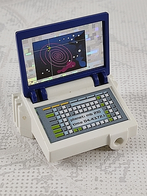 zweiteiliger Laptop, weiße Basis mit dunkelblauem Monitor, Aufkleber Variante 2 (V2)