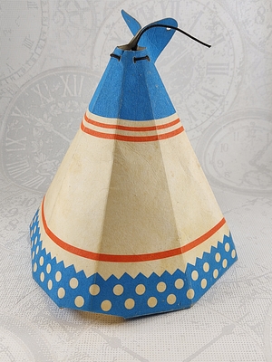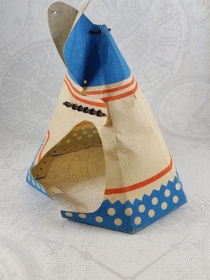 Indianerzelt, Zeltplane mit Verschluss, Stoff-ähnliches Material weist Alterungsspuren auf