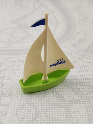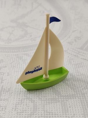 Spielzeug Segelboot, Segel beige mit blauem Aufdruck "playmobil"