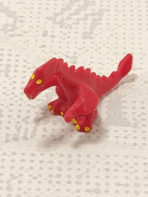 Spielzeug, roter Mini-Drache mit gelben Augen und Krallen