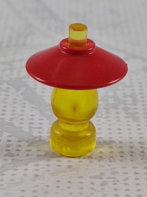 Lampenglas Flaschen-förmig gelb mit Lampenschirm rot