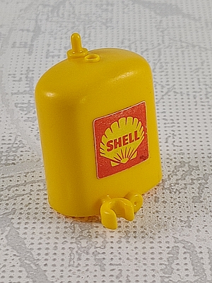 ovaler Behälter für Benzin, zur Befestigung an einem Handwagen, Aufkleber "Shell"