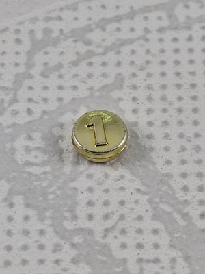 eine glänzende Geldmünze, Goldmünze Vorderseite: "1" - Rückseite: Krone