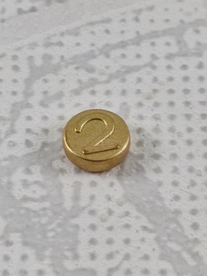 eine Geldmünze, Goldmünze Vorderseite: "2" - Rückseite: Wappen