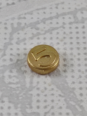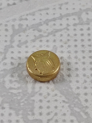 eine Geldmünze, Goldmünze Vorderseite: "5" - Rückseite: Königskopf