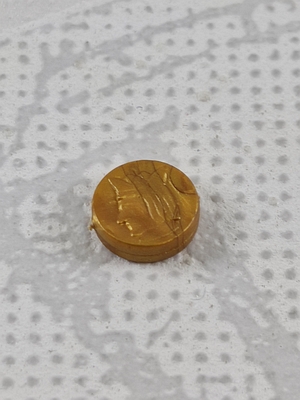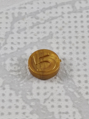 eine Geldmünze, Goldmünze Vorderseite: "5" - Rückseite: Königskopf