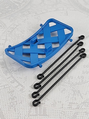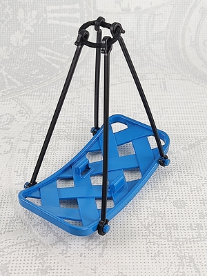 rechteckige, leicht gebogene Netzschaukel blau mit vier schwarzen Schaukelhaken - 5-teilig