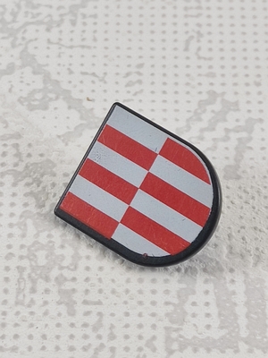wappenförmiges Schild, schwarz, rot/weiße Streifen