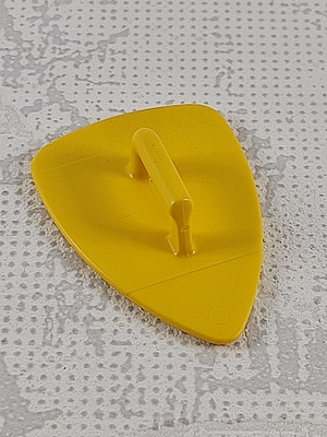 dreieckiges Schutzschild, abgerundete Ecken, zwei gelbe Kronen auf blauem Hintergrund und zwei Piek-Symbole auf rotem Hintergrund