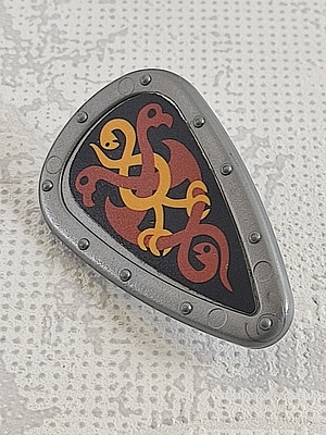 dreieckiges Schutzschild, silber, abgerundete Ecken, dunkelrote Schlangen auf schwarzem Hintergrund